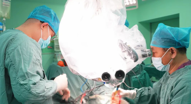 國文醫(yī)院神經(jīng)外科樸哲范主任、張振剛副主任立即申請啟動多學(xué)科專家緊急會診。經(jīng)過嚴(yán)謹(jǐn)評估,一套環(huán)環(huán)相扣的治療方案應(yīng)運(yùn)而生:團(tuán)隊(duì)將首先實(shí)施大腦病損切除術(shù),精準(zhǔn)剝離腦膜瘤;預(yù)防出現(xiàn)腦脊液漏,給予修補(bǔ)硬腦膜;最后進(jìn)行顱骨修補(bǔ)術(shù),重建顱腔的生理屏障。手術(shù)全程緊張有序,憑借精湛的顯微操作技術(shù)與默契配合,團(tuán)隊(duì)接力完成三項(xiàng)術(shù)式。